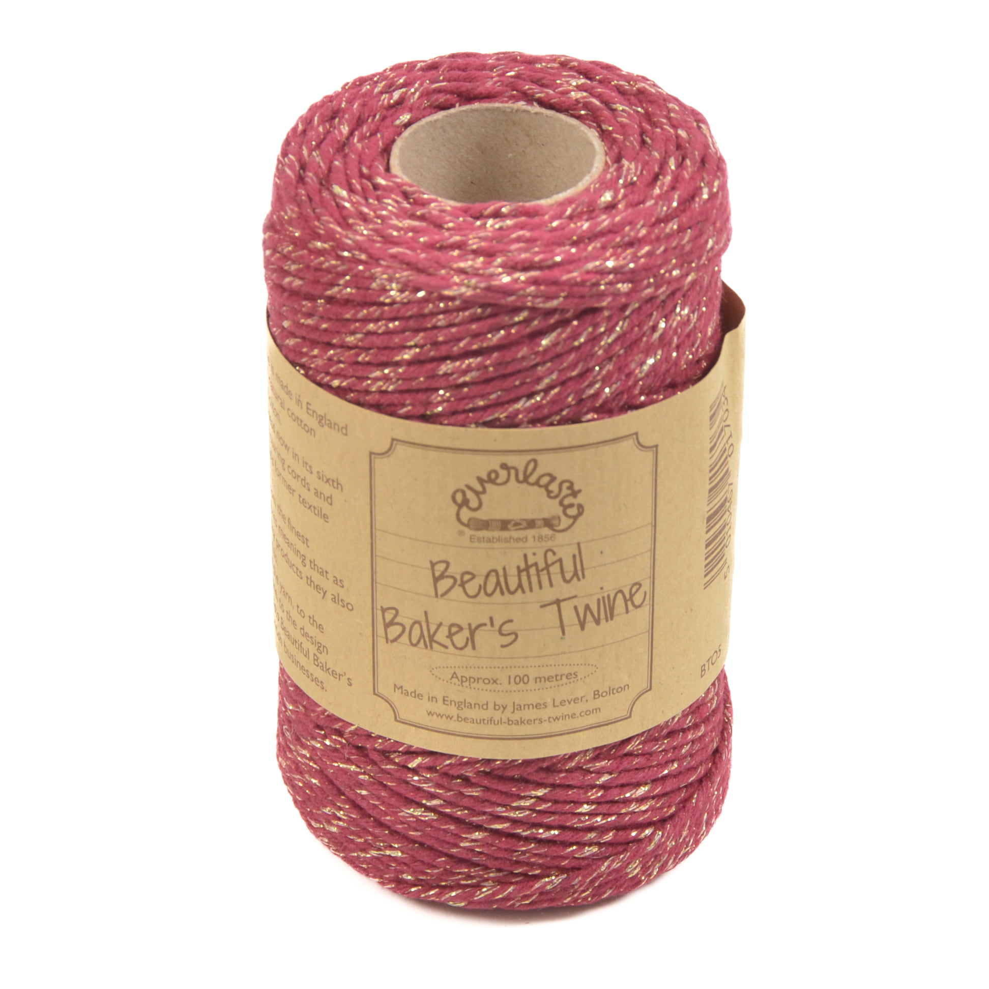 A beautiful british made premium Burgundy Sparkle Baker’s Twine, made from 100% natural soft cotton and wound on a recycled cardboard spool.